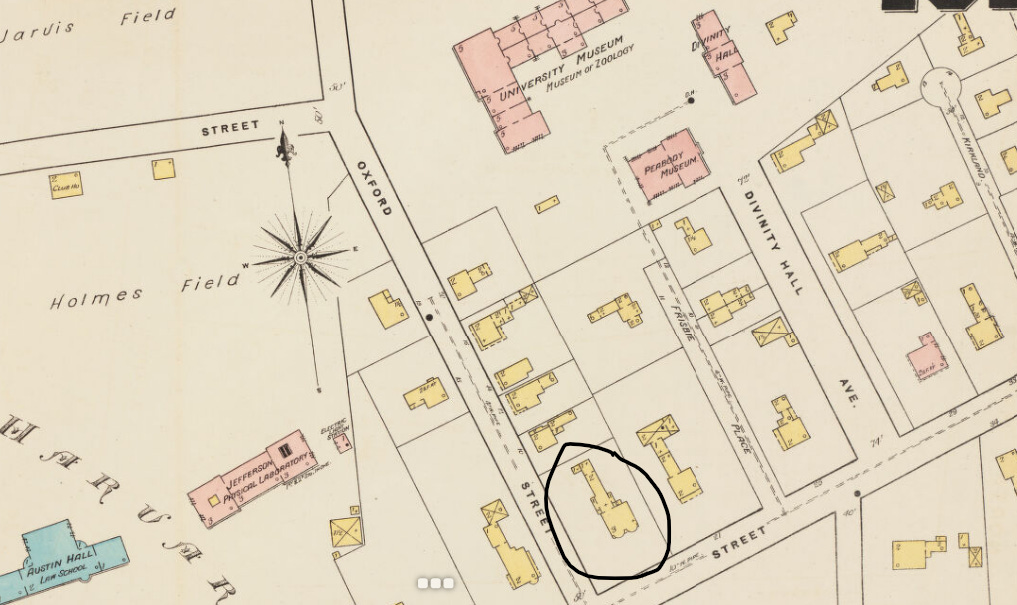 I found two. One is the Sanborn Fire Insurance Maps 1885-88, a detailed block-by-block map made for fire insurers. The map does show a large building at the corner of Oxford and Kirkland, where Lowell Lecture Hall stands today. Is it possible that there was already a lecture hall on that corner, later ebuilt and named after Lowell?